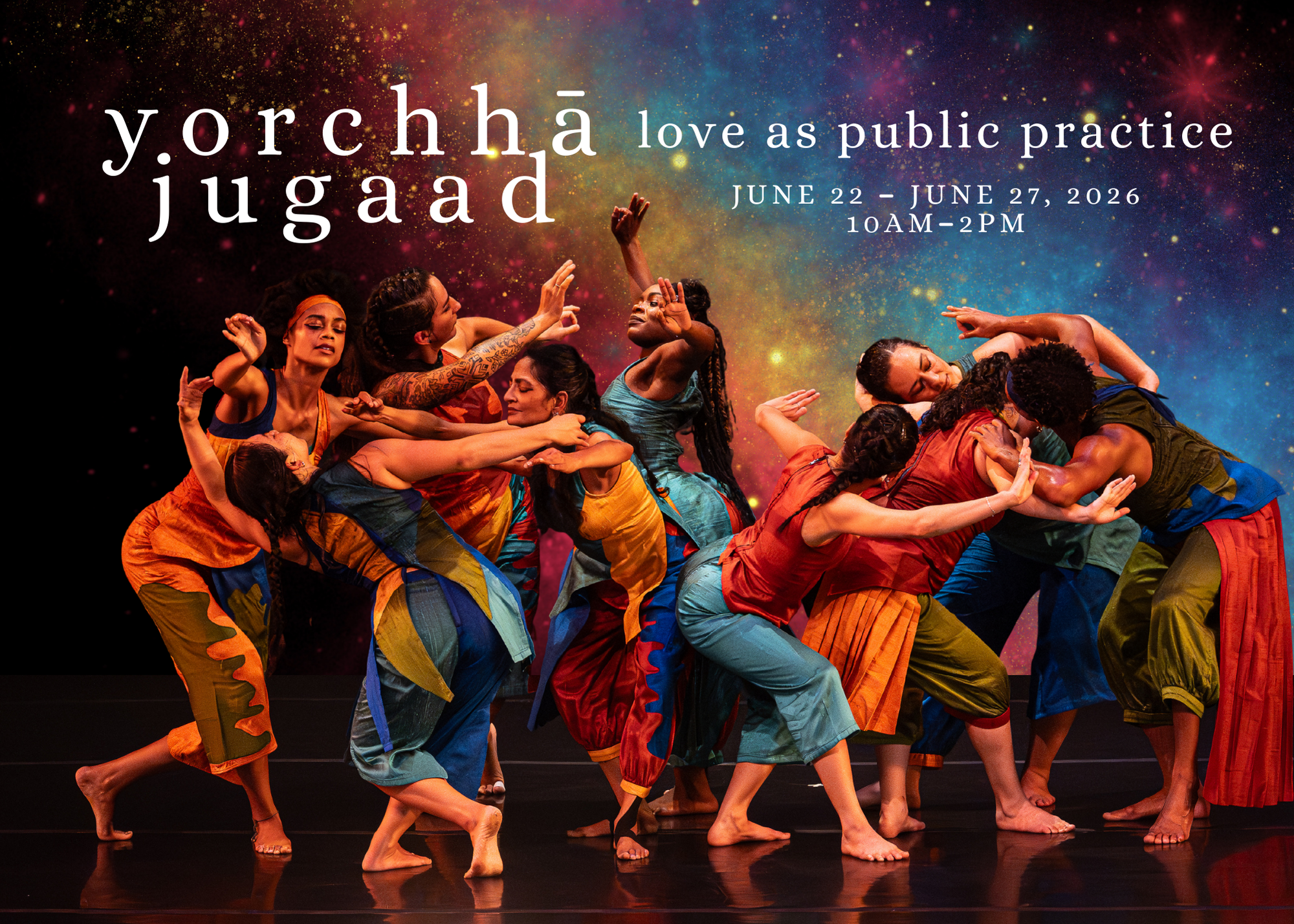 The 2026 Summer Intensive will immerse us in the methodology of "Yorchhā Jugaad", the practice of 'hacking' systemic structures to connect to our collective joy and freedom. Yorchhā Jugaad is an intervention in concert dance conventions: it proposes that dancing together, in communal practice, can be a methodology for subverting pervasive narratives of narrow individualism that vitiate the commons of dance with ego. Come, join us!